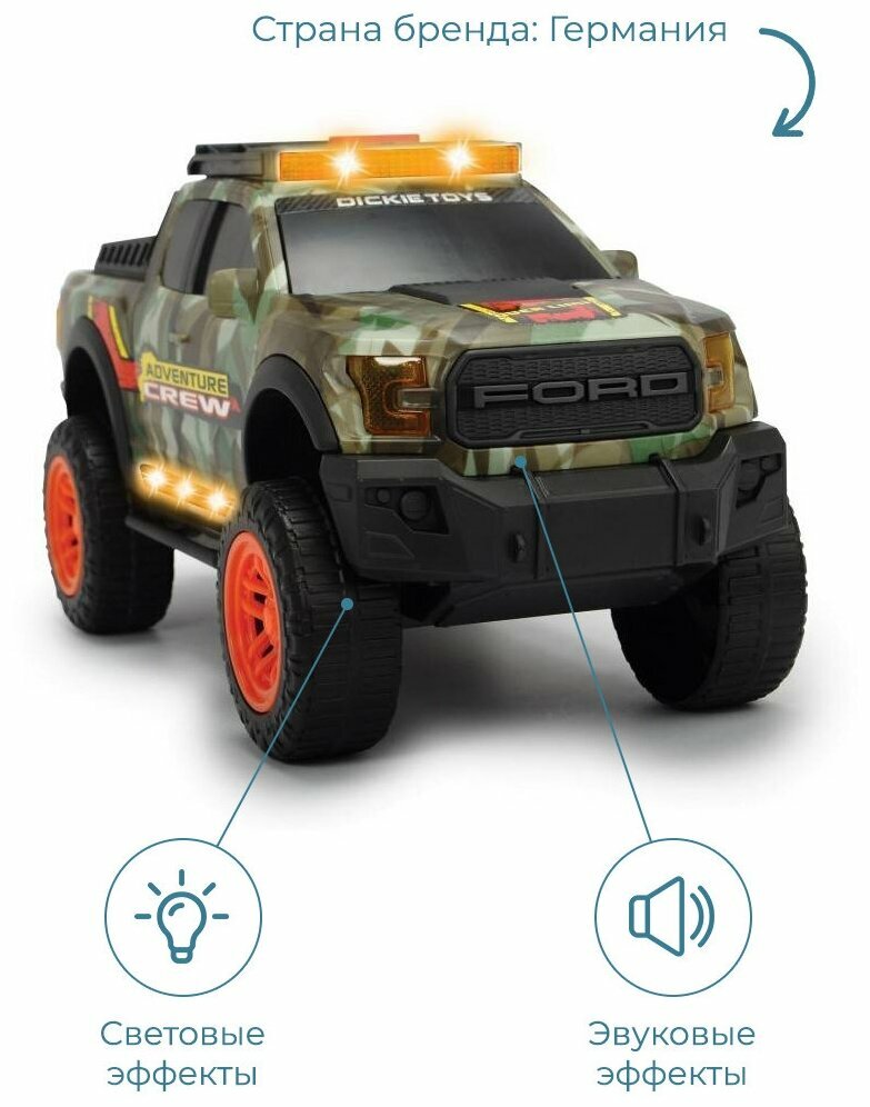 Машинка Dickie Toys Adventure Ford F150 Raptor, 33 см, свет, звук