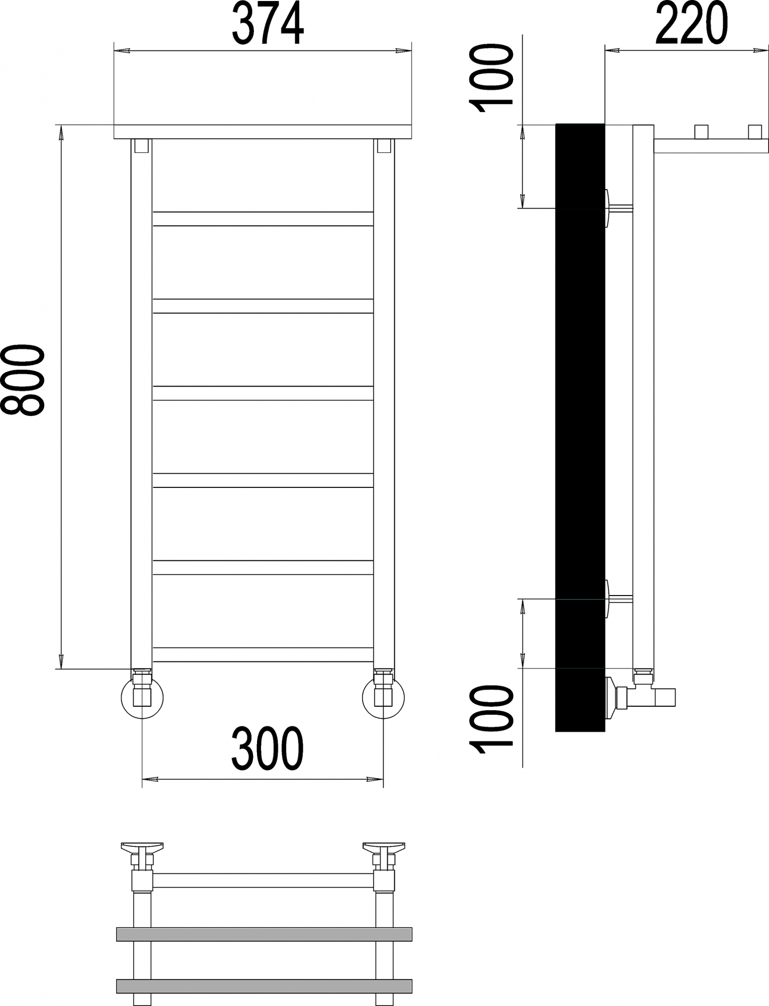Полотенцесушитель электрический Маргроид В10 30х80, таймер, черный матовый