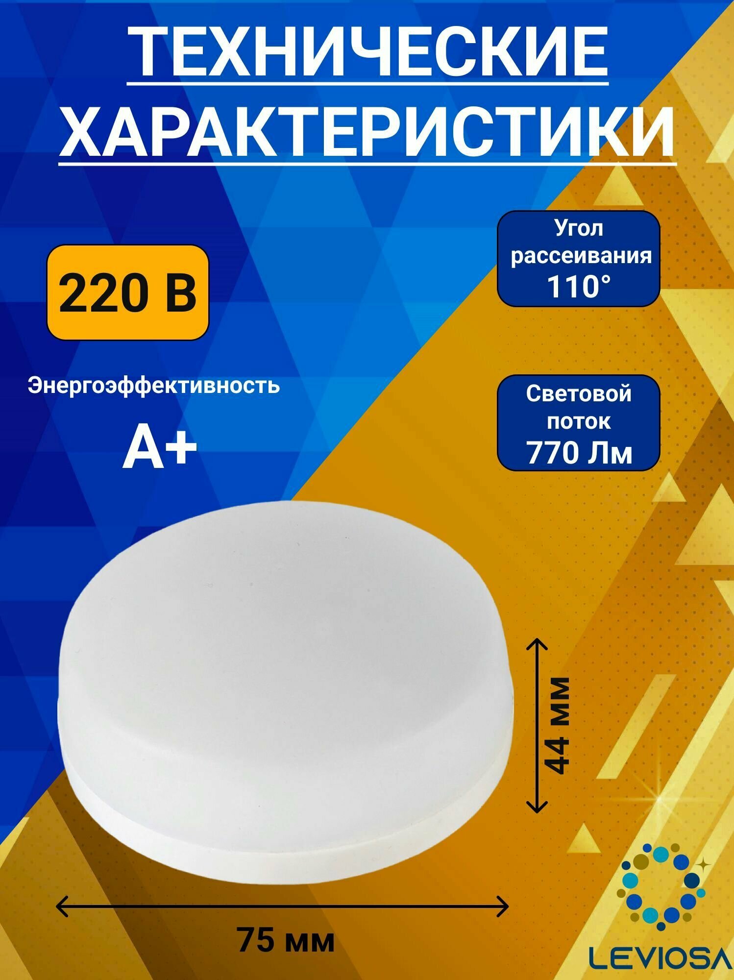 Лампочка светодиодная, General, Комплект из 10 шт., 7 Вт, Цоколь GX53, 6500К, Форма лампы Шайба, GX53 760 ₽