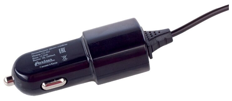 Автомобильное заряд. устр. Partner с шнуром Micro 1A черное информация: