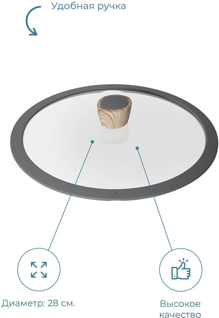 Стеклянная крышка с силиконовым ободом, 28 см, NADOBA, серия MINERALICA