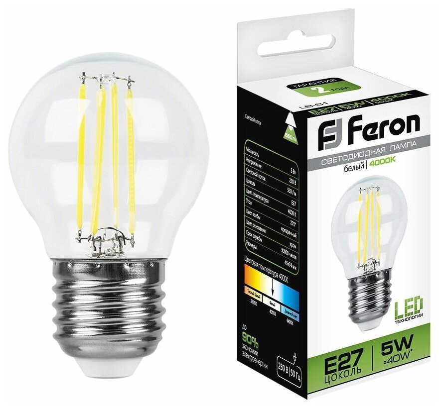 10 цен на FERON Лампа светодиодная, 5W 230V E27 4000K, LB-61 25582