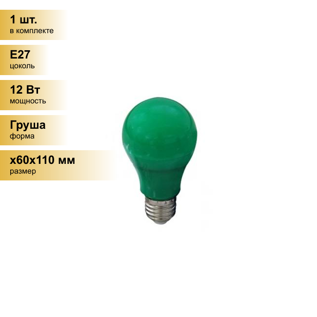 Светодиодные лампы E27 Ecola Лампа светодиодная Ecola ЛОН A60 E27 12W зеленая 360° 110x60 K7CG12ELY (упаковка 5 шт) информация: