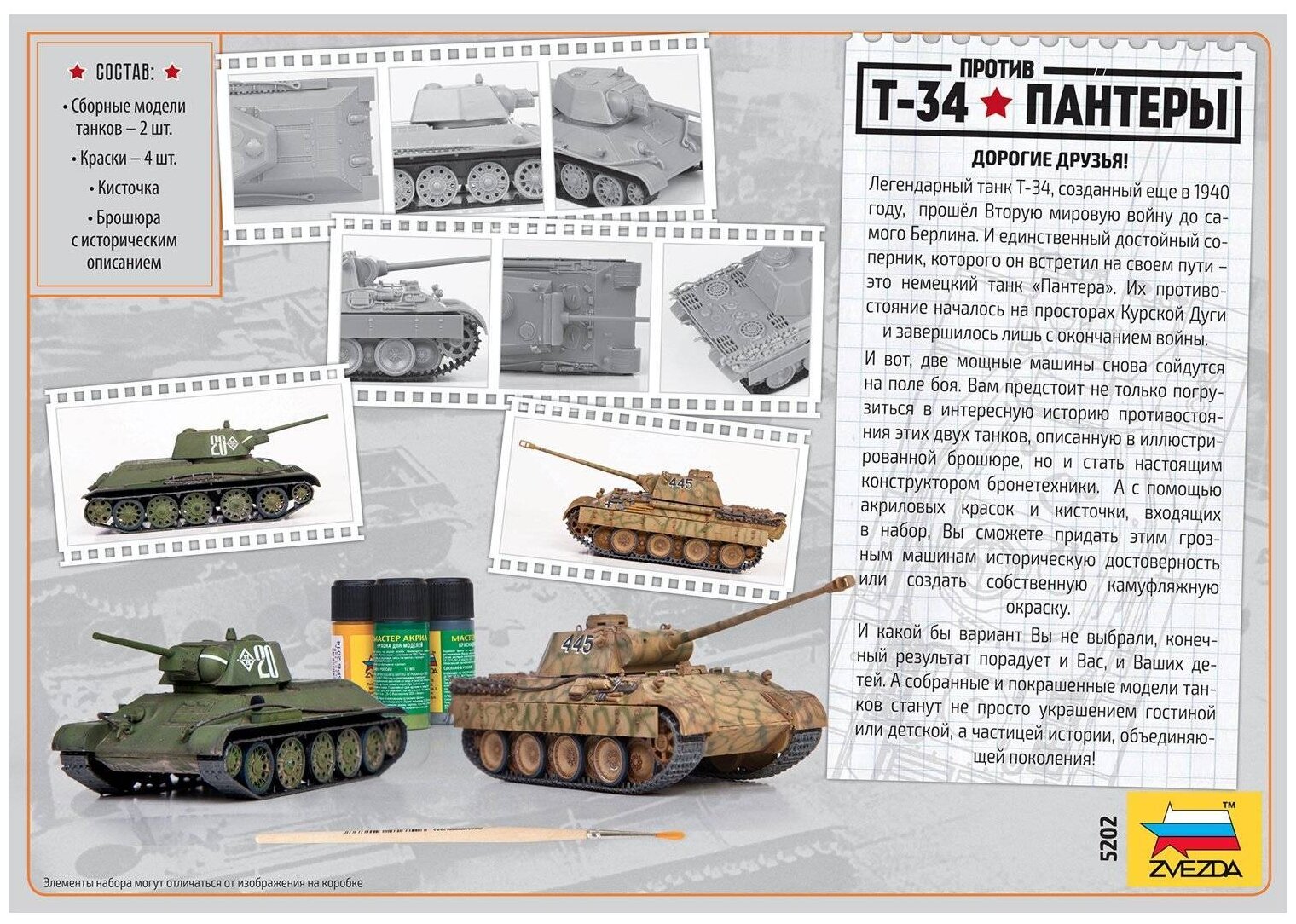 Сборная модель ZVEZDA Великие противостояния "Т-34 против Пантеры" (сборка без клея), 1/72, ZV-5202