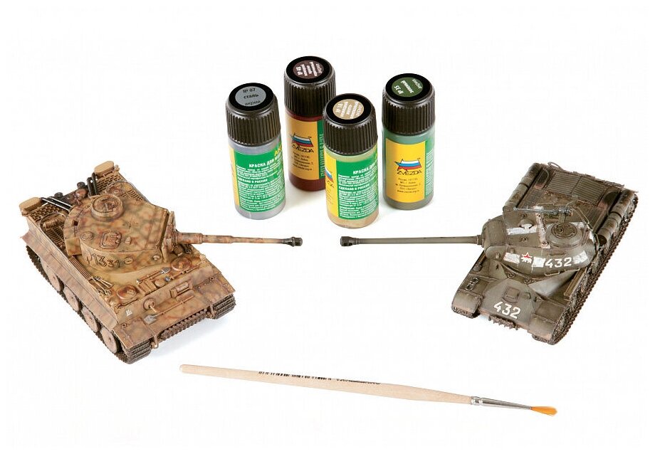 | Комплектация | сборные модели танков - 2 шт / краски - 4 шт / кисточка / брошюра с историческим описанием |