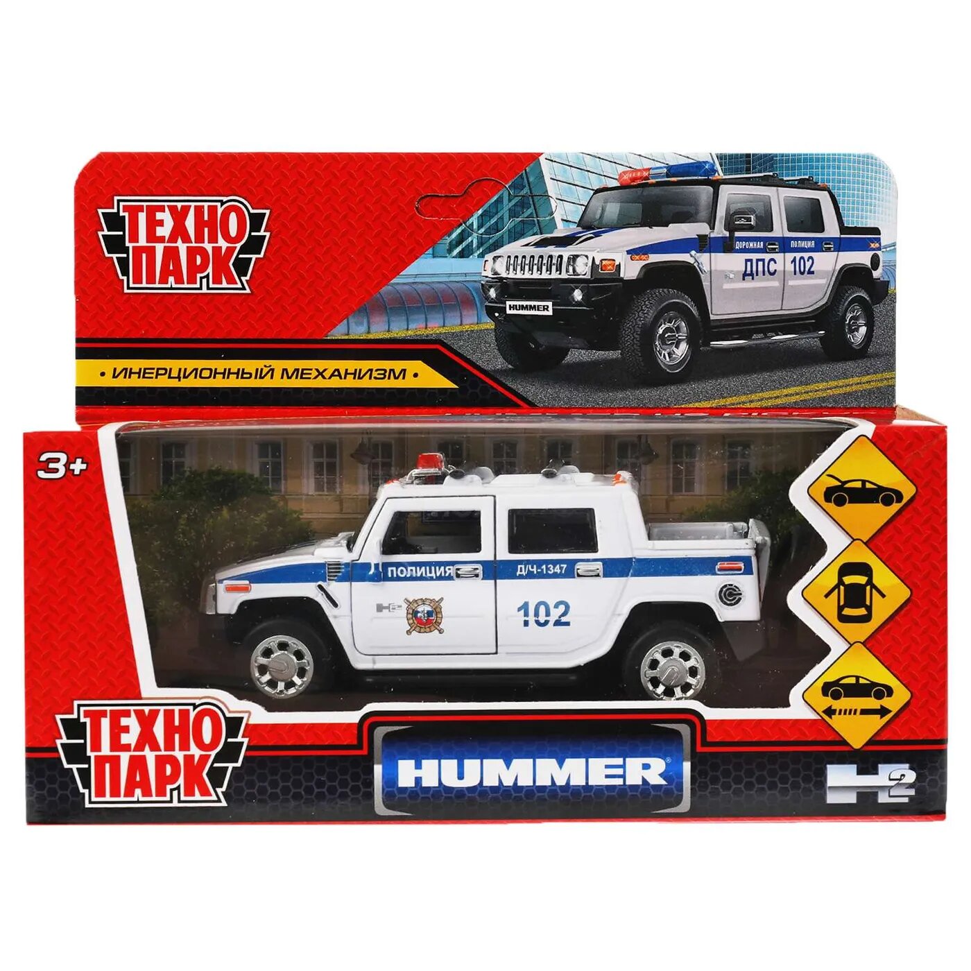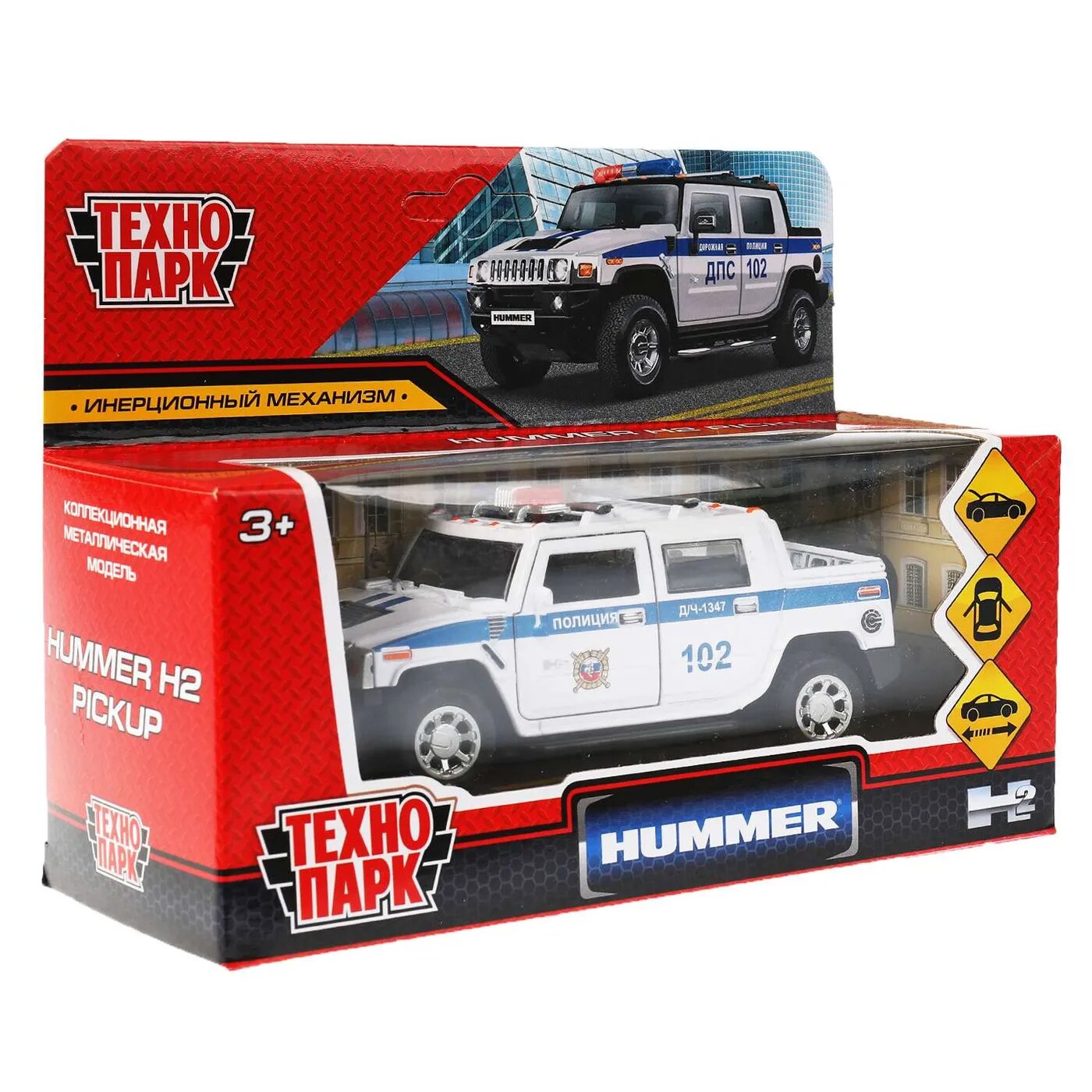 10 цен на Машина инерционная Технопарк металл, hummer h2 pickup полиция, 12 см