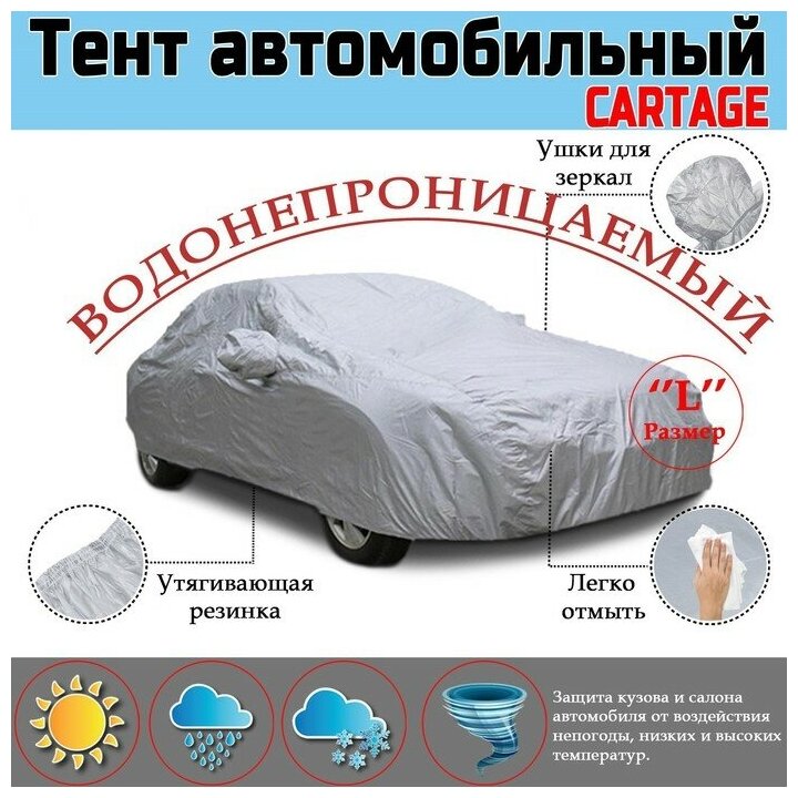 Тент автомобильный CARTAGE, водонепроницаемый, полиэстер, L, 470?180?150 см Cartage 5277312 .