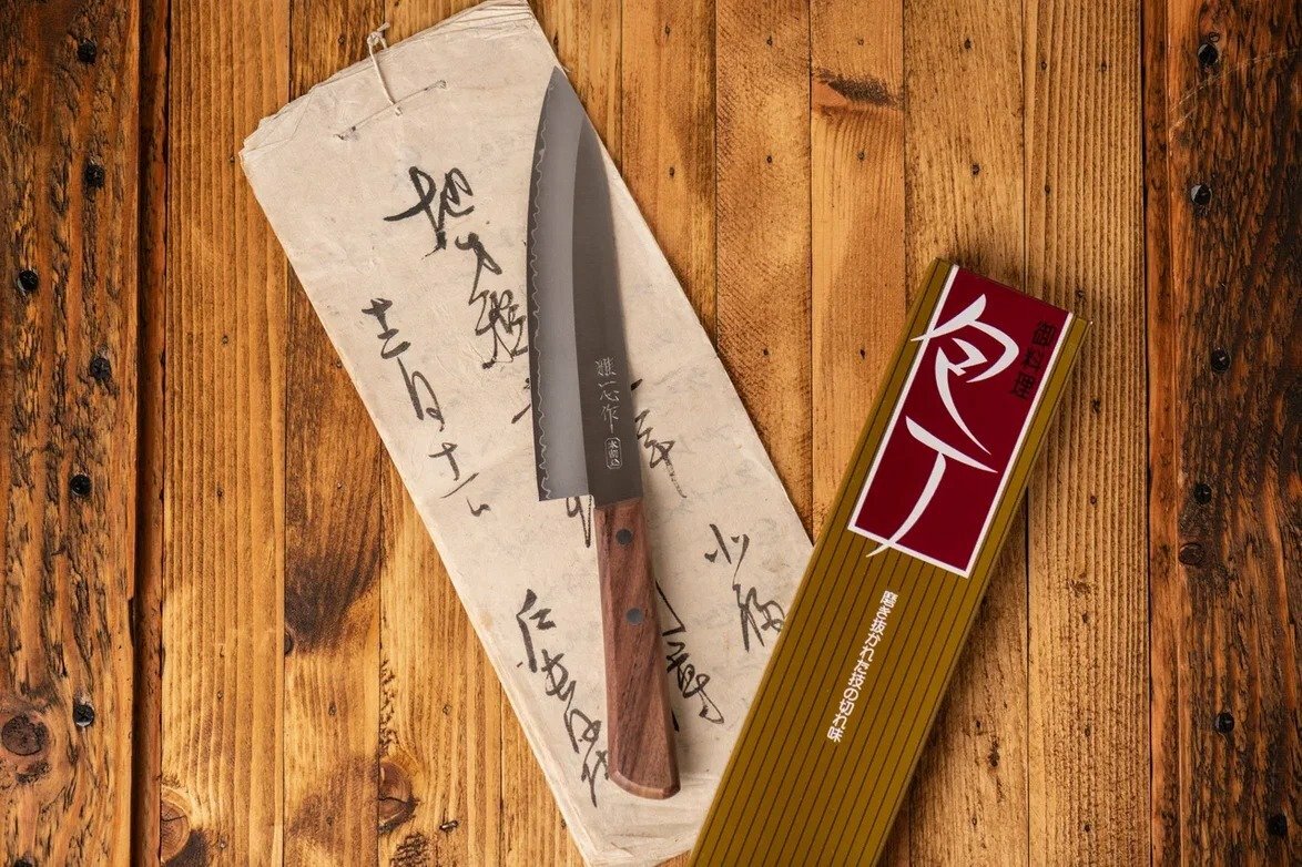 Нож Кухонный Поварской шеф для мяса и рыбы Kanetsugu (2004), длина лезвия 18,0 см, сталь AUS-8/SUS410, 3 слоя, рукоять дерево, Япония 5 160 ₽