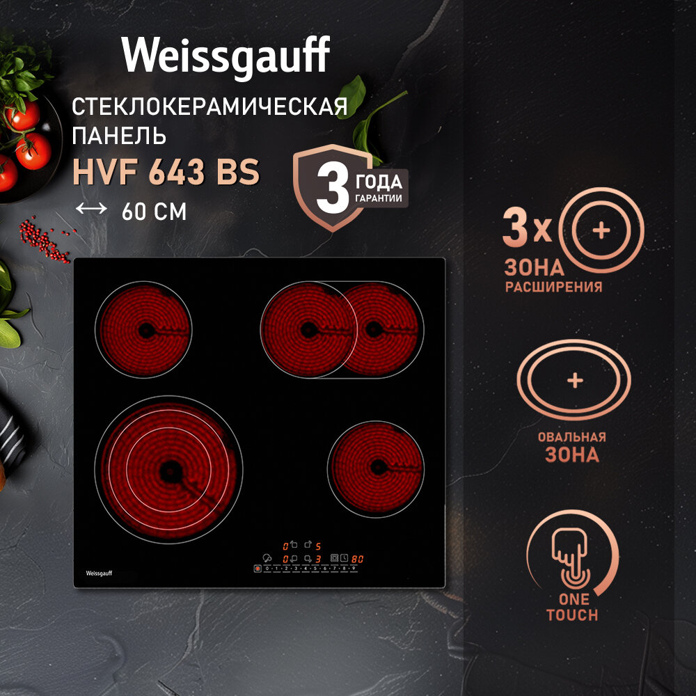 Электрическая варочная панель WEISSGAUFF HVF 643 BS, электрическая, независимая, черный