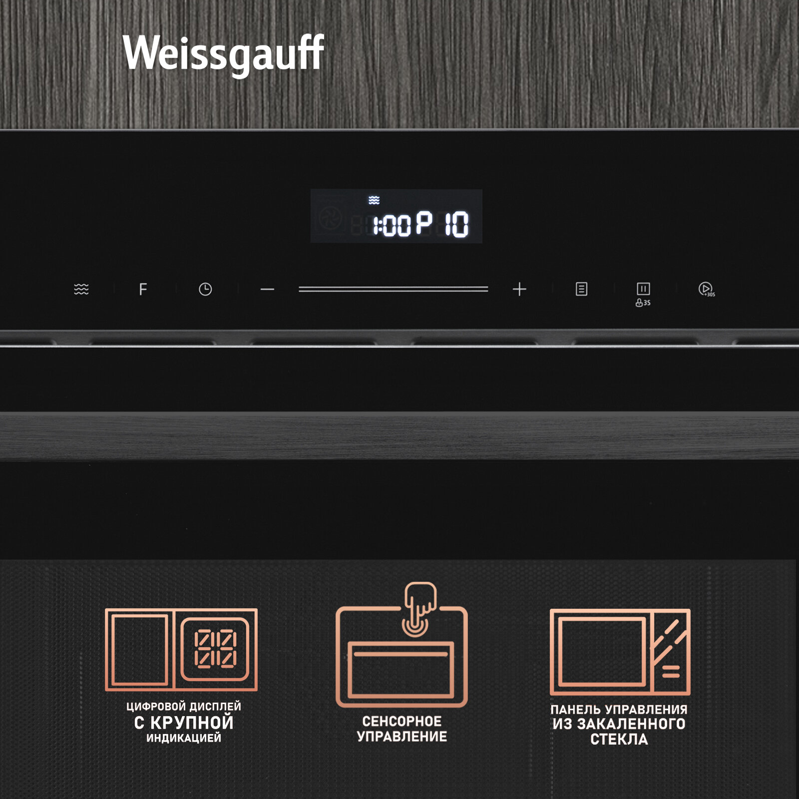 Встраиваемая микроволновая печь Weissgauff BMWO-341 DB Black Edition, Сенсорный блок управления 41 706 ₽