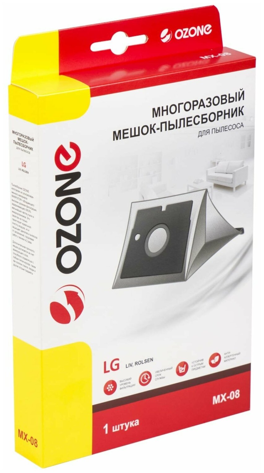 Многоразовый мешок-пылесборник Ozone MX-08 для пылесоса LG, ROLSEN, LIV, 1 шт