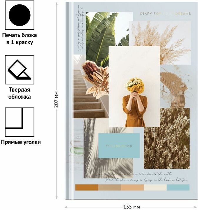 Ежедневник недатированный А5 OfficeSpace "Стиль. Stylish mood" (136 листов) обложка 7Бц, матовая ламинация (Ен5т136_46296)