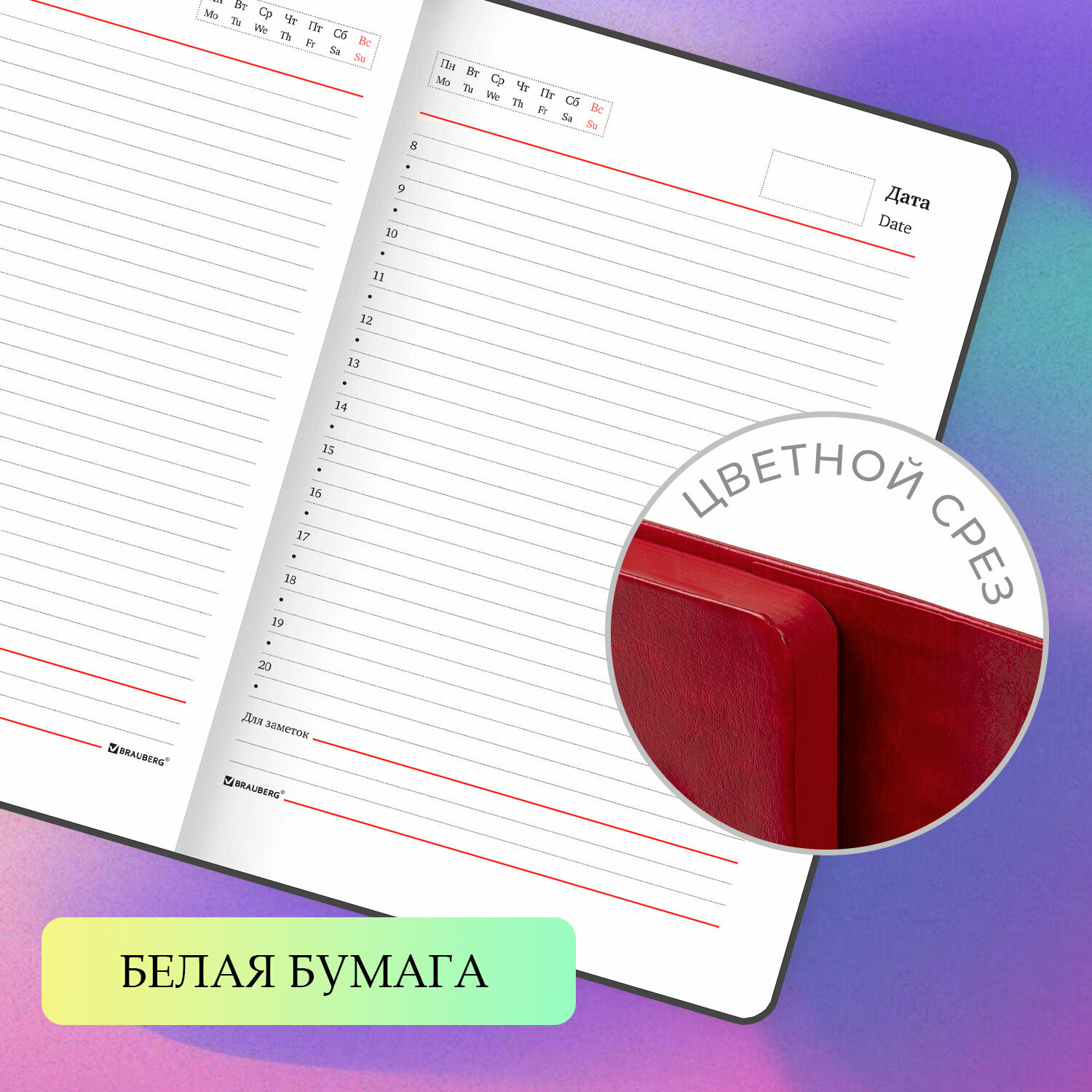 Ежедневник с магнитным клапаном недатированный, под кожу, А5, красный, BRAUBERG "Magnetic X", 113281 В комплекте: 1шт. информация: