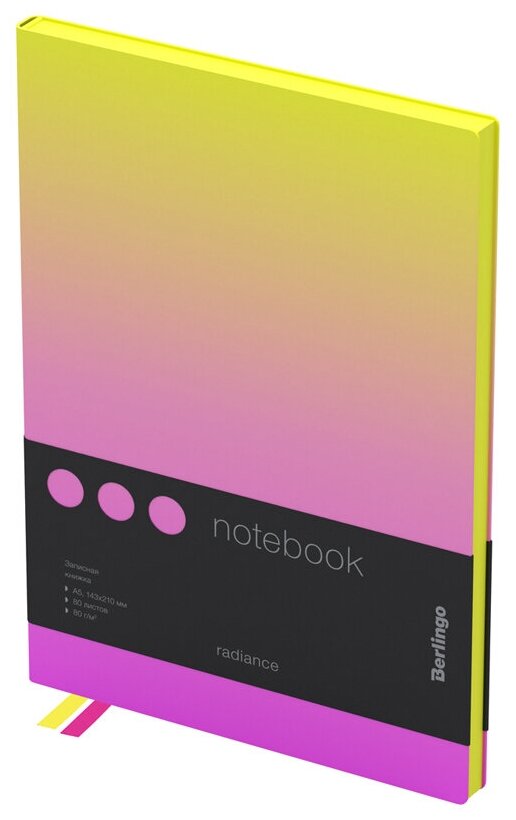 Записная книжка Berlingo А5, 80 листов, кожзам, "Radiance", черный срез, желтый-розовый, градиент (NB0_93501)