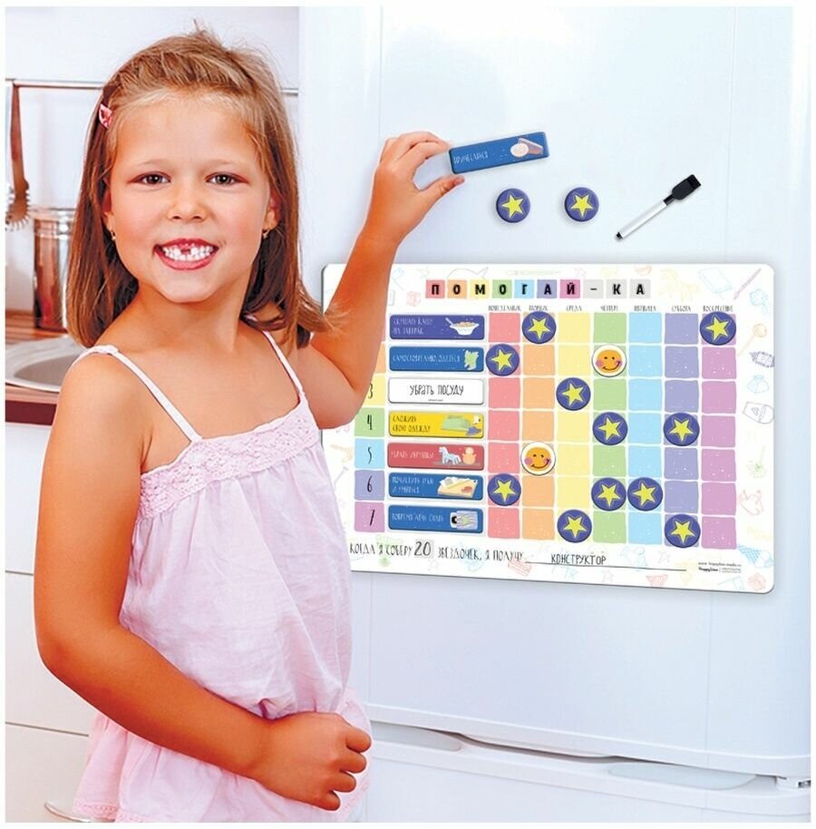 Планер-мотиватор магнитный детский с маркером HappyLine "Помогай-ка!", 42*29 см . информация: