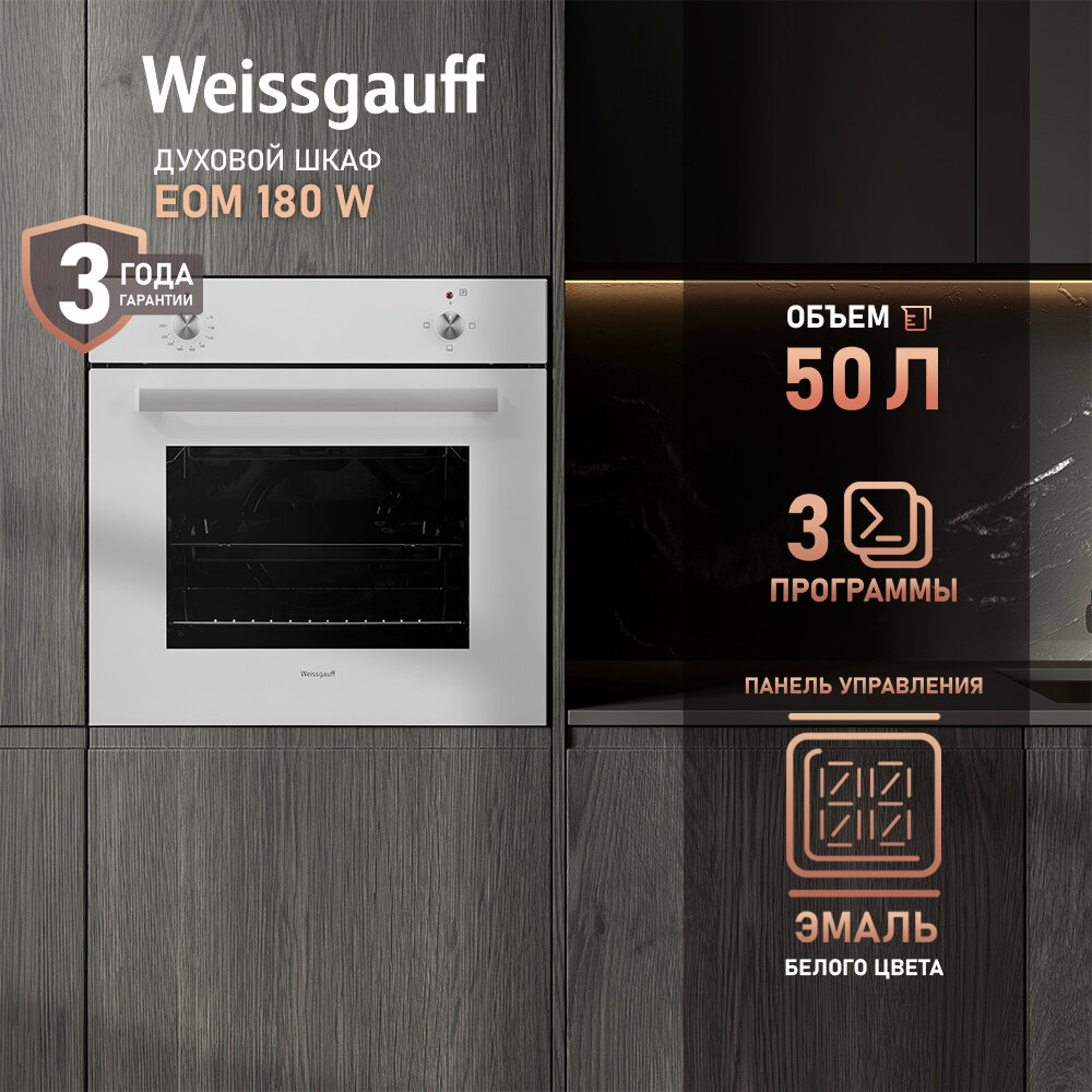 10 цен на Электрический духовой шкаф Weissgauff EOM 180 W, 60 см, 3 года гарантии, Эмаль SMART CLEAN, Класс энергопотребления А, Двойное стекло дверцы