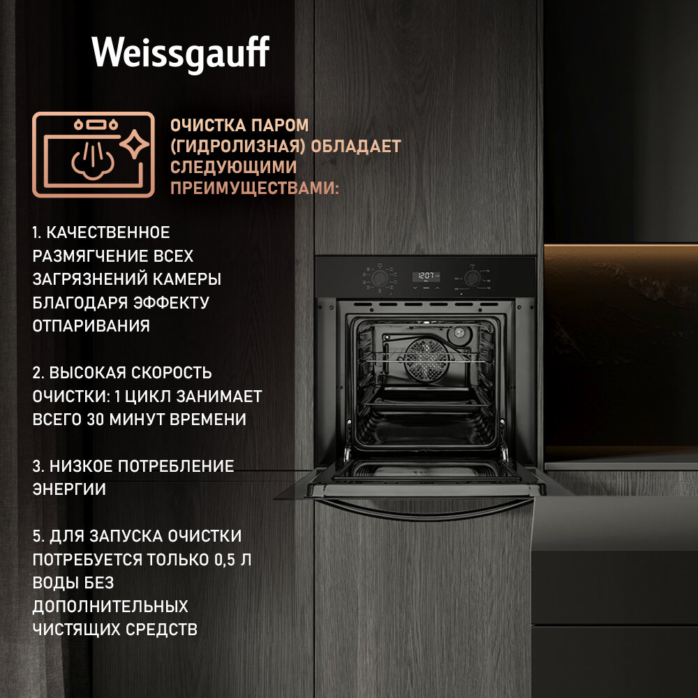 10 цен на Электрический духовой шкаф Weissgauff EOV 196 LB с грилем и конвекцией, гарантия 3 года, Утапливаемые рукоятки PIPO, Класс энергопотребления А, Эмаль SMART CLEAN