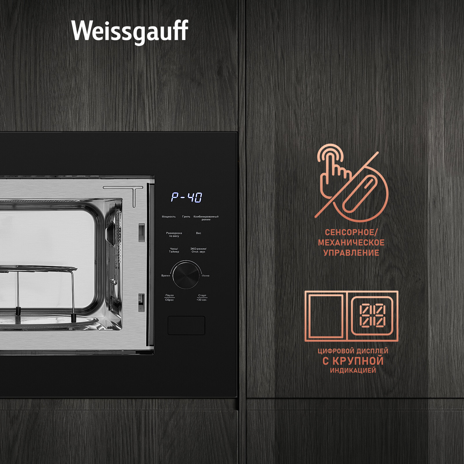 10 цен на Встраиваемая микроволновая печь Weissgauff HMT-625 Grill 3 года гарантии, объем 25 литров, гриль, разморозка по весу, Блокировка от детей