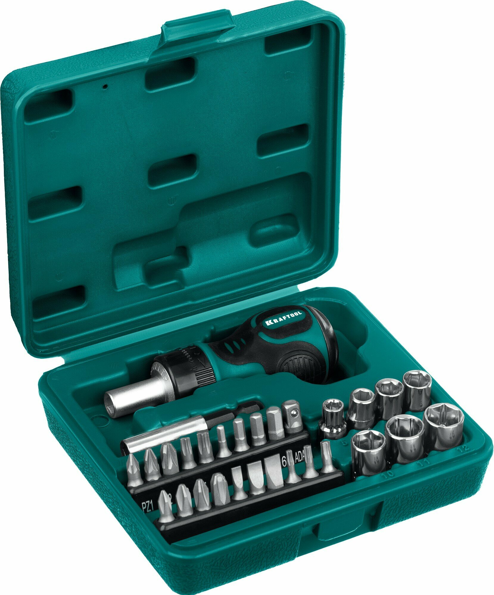 Набор KRAFTOOL Отвертка реверсивная с битами и торцовыми головками, 29 предметов