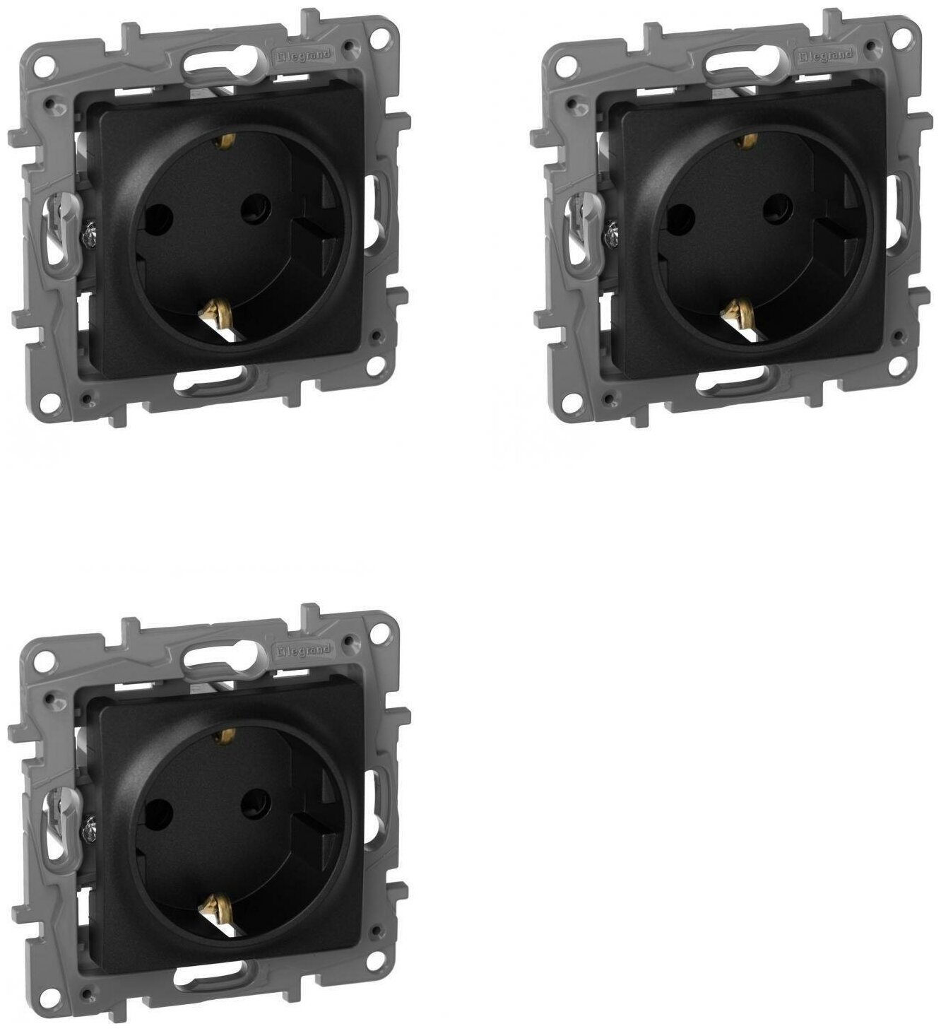 Механизм розетки Legrand Etika с заземлением с защитными шторками антрацит (комплект из 3 шт) информация: