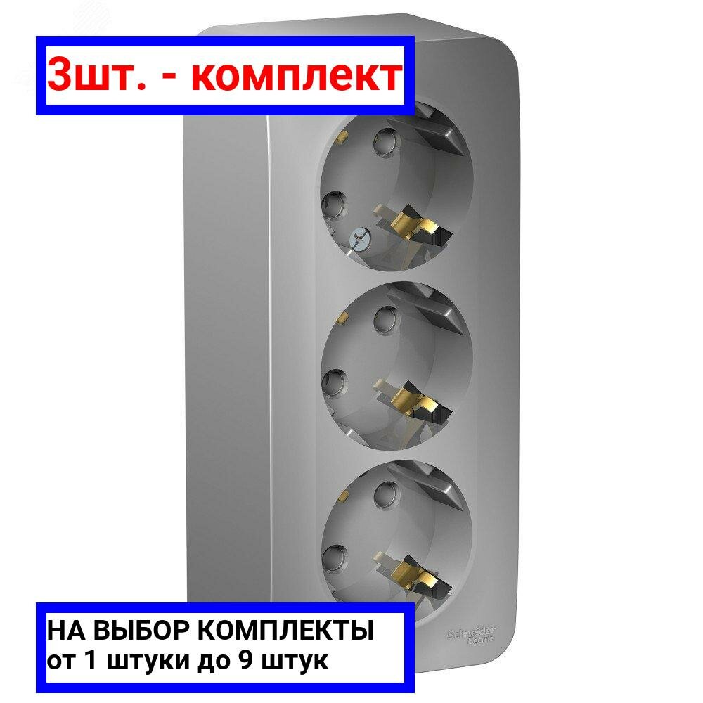 10 цен на 3шт. - Розетка BLANCA наружная трехпостовая, с заземлением, без шторок, с изолирующей пластиной, 16А, 250В, алюминий / Systeme Electric; арт. BLNRA010313; оригинал / - комплект 3шт