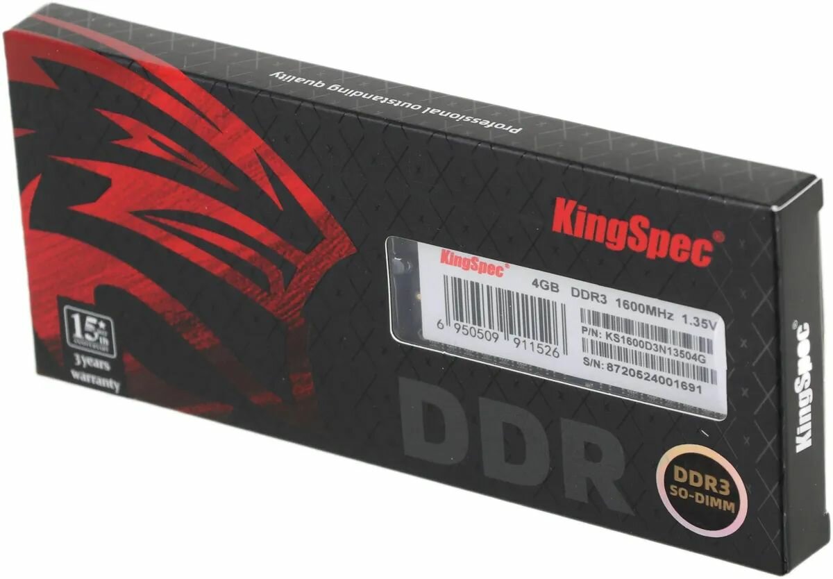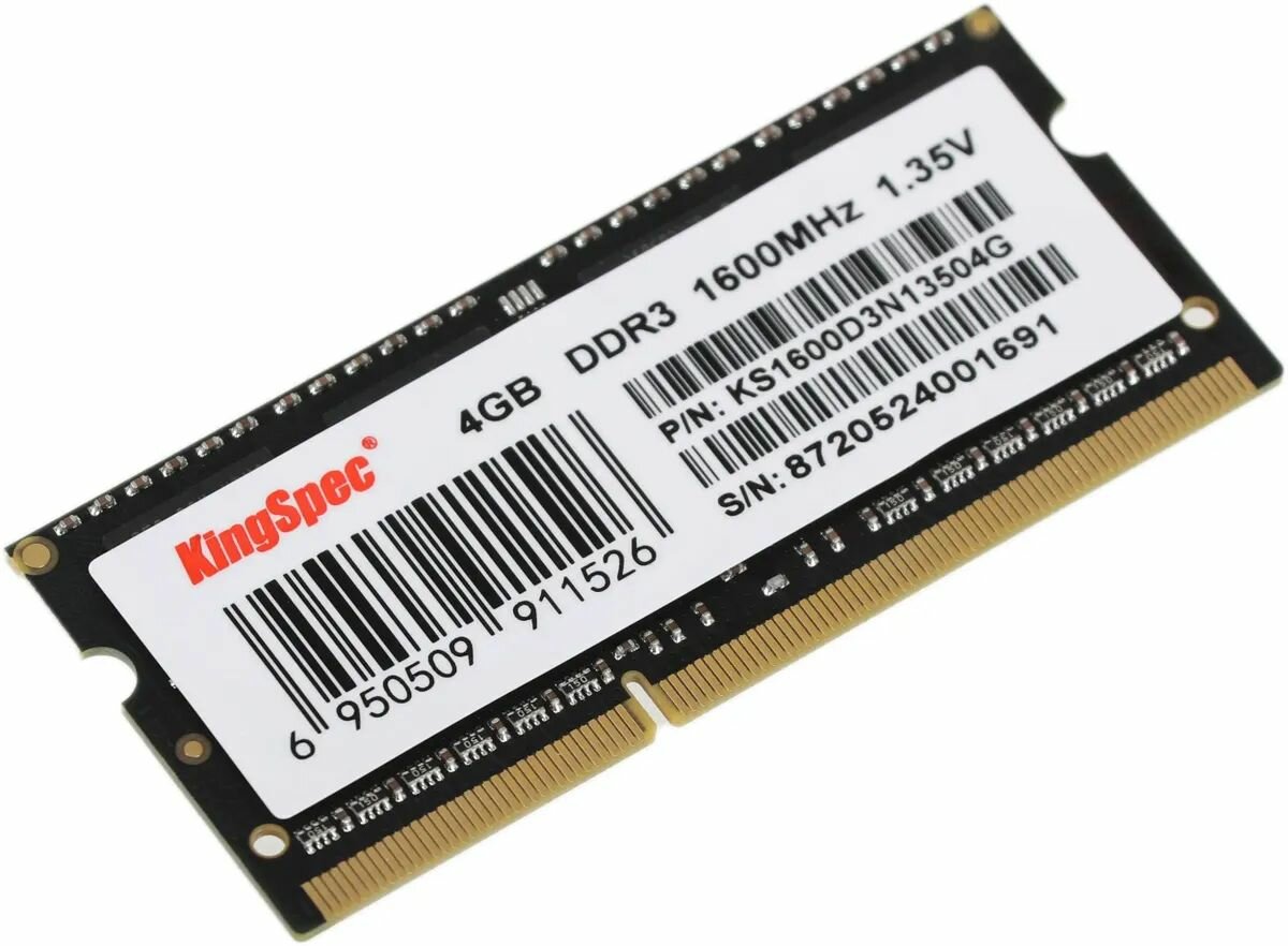 Память DDR3 4Gb 1600MHz Kingspec KS1600D3N13504G RTL PC3-12800 CL11 SO-DIMM 204-pin 1.35В информация: