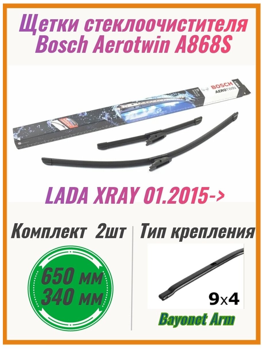 Щетка стеклоочистителя бескаркасная Bosch Aerotwin A868S 650 мм / 340 мм, 2 шт. для LADA X-RAY, Renault Clio, Renault Kaptur
