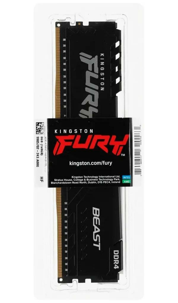 Оперативная память Kingston DDR4 8Gb 3200MHz FURY Beast Black (KF432C16BB/8) информация: