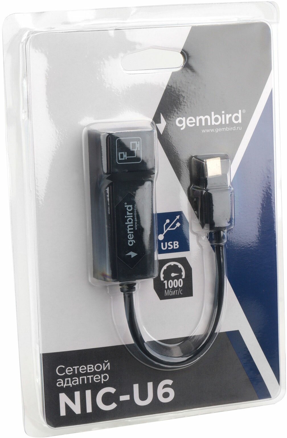 Сетевая карта RJ-45 Gembird NIC-U6 USB-A 3.0 LAN Ethernet кабель адаптер - 0.17м чёрный