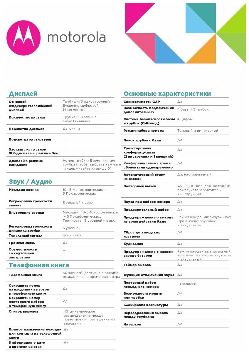Отзывы на Радиотелефон Motorola Dect C1002LB+ черный (труб. в компл.:2шт)