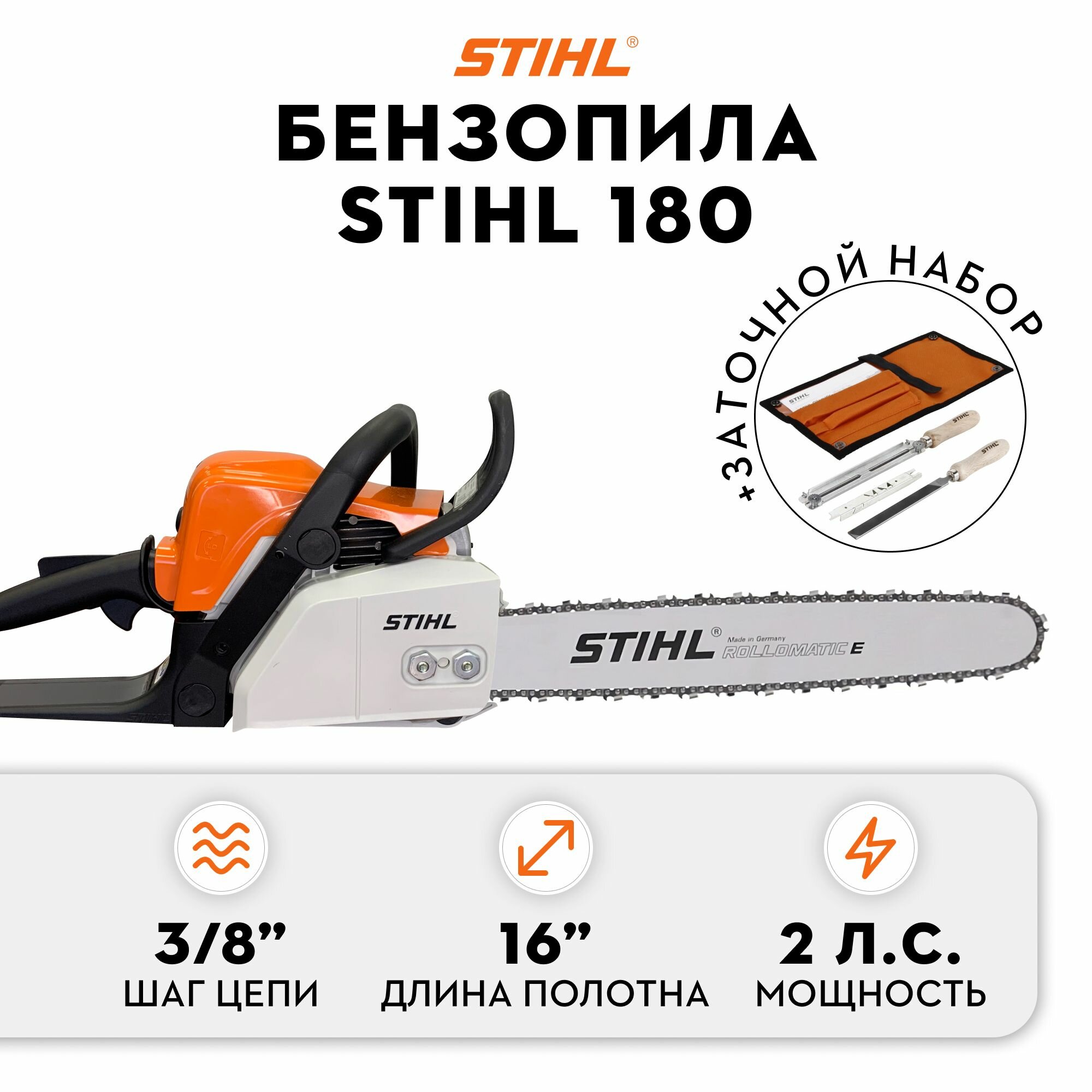Бензопила цепная STIHL MS 180 16" 3/8" Picco 1,3 мм+ набор заточной информация: