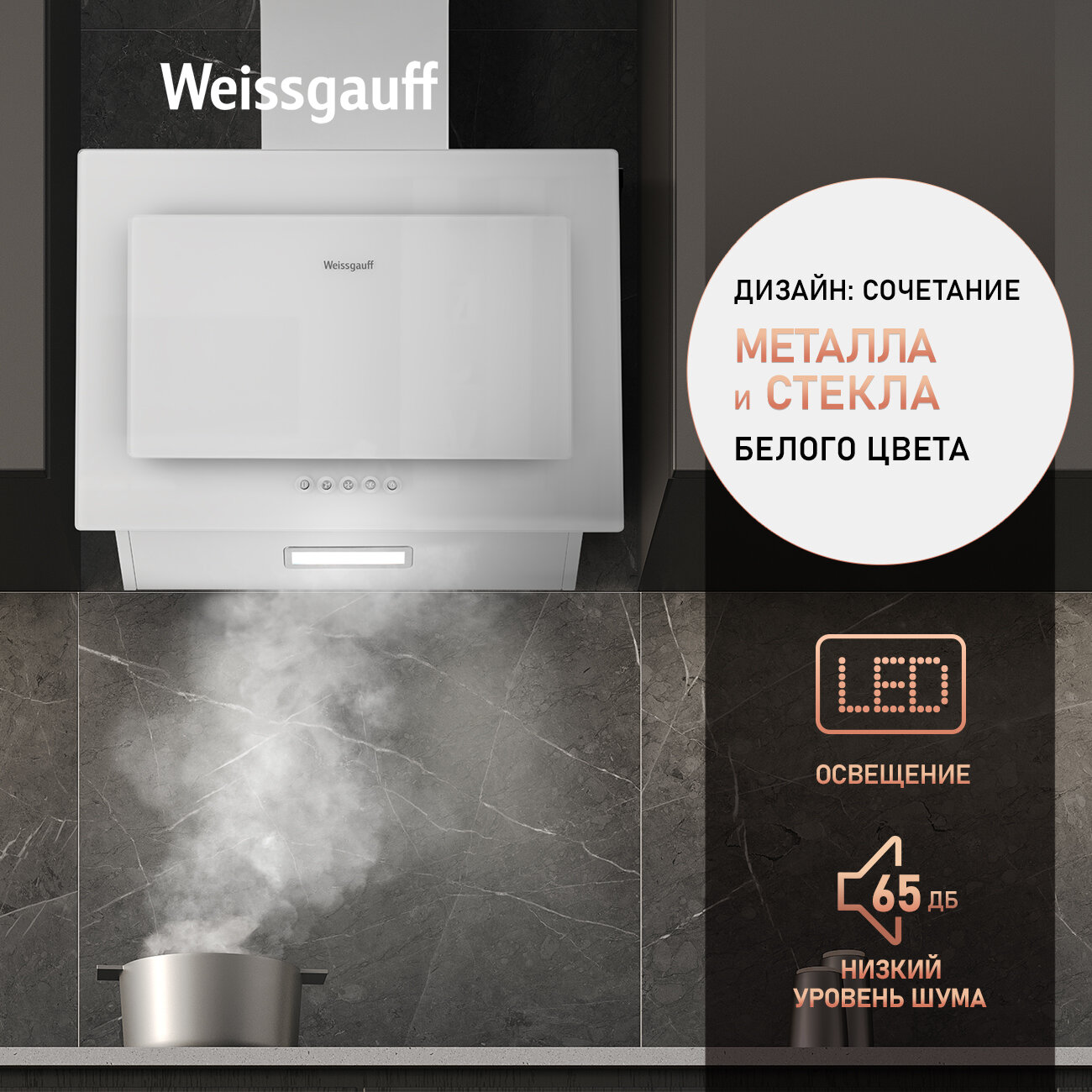 Отзывы на Купольная вытяжка Weissgauff Zaurak 60 PB WH 3 года гарантии, Алюминиевый жировой фильтр, Низкий уровень шума