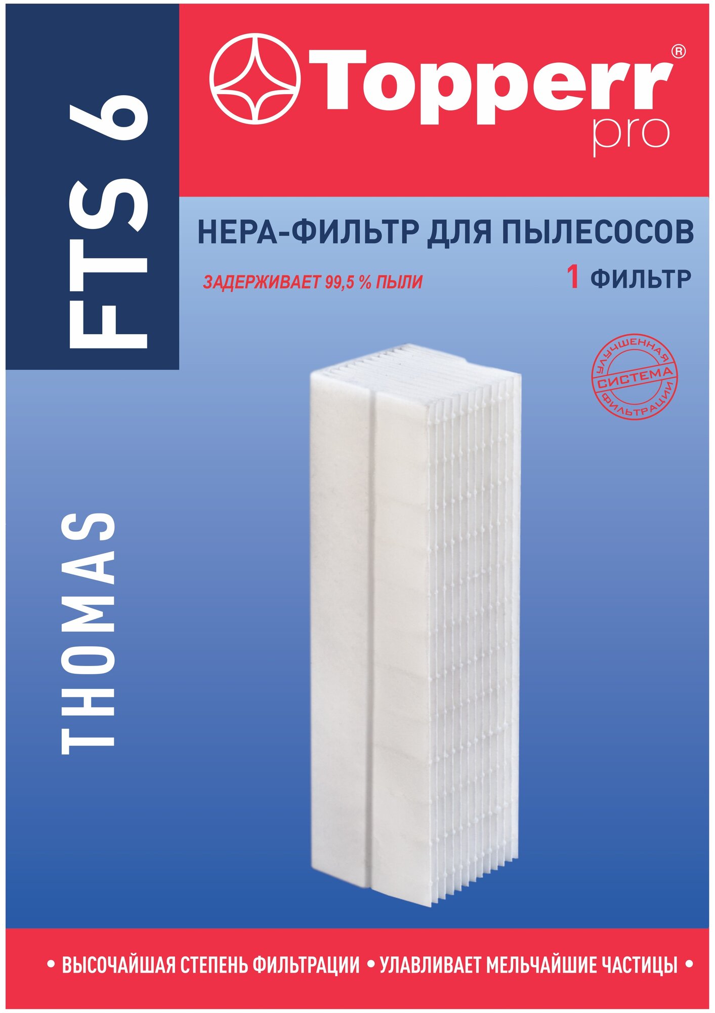 Фильтр HEPA Topperr FTS 6, для пылесосов Thomas, сменный, белый 590 ₽