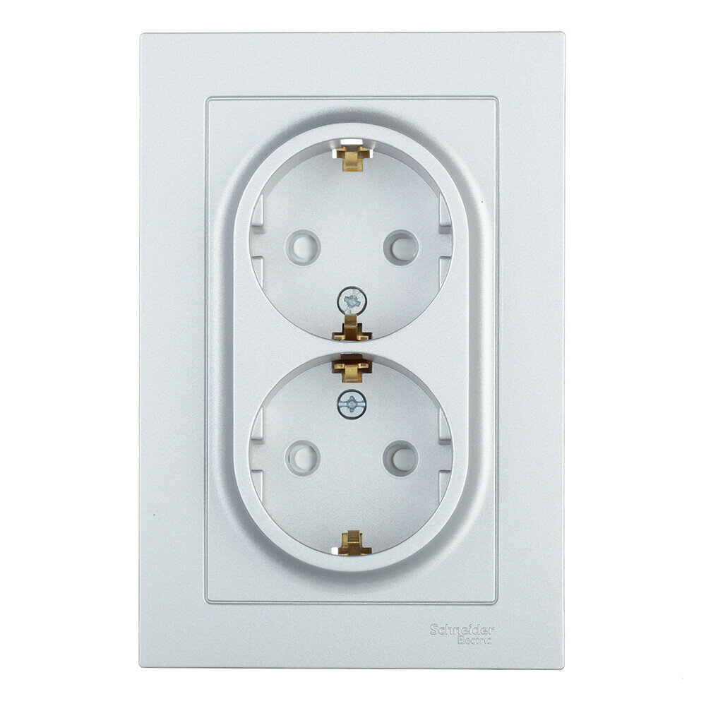 Розетка двойная с заземлением со шторками в сборе Schneider Electric AtlasDesign 16А, алюминий ATN000326