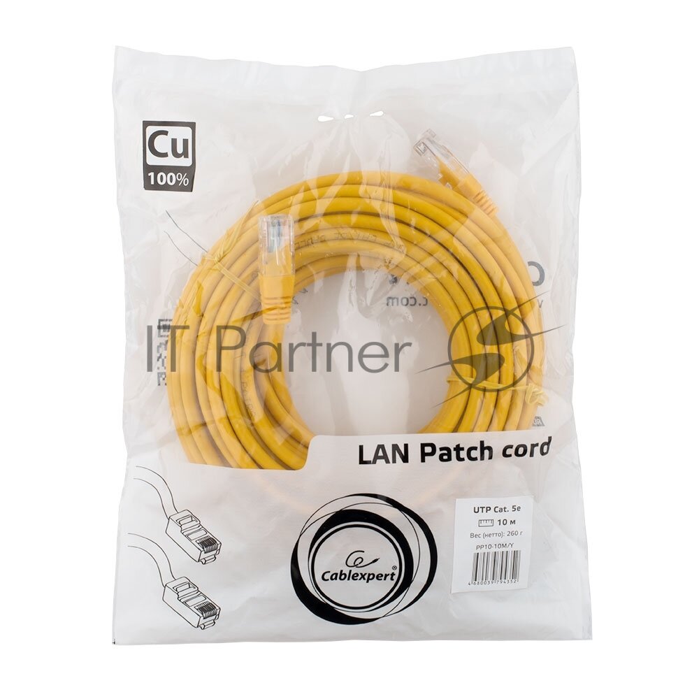 Патч-корд UTP CAT5e медный 10м Cablexpert PP10-10M/Y RJ-45 кабель - жёлтый информация: