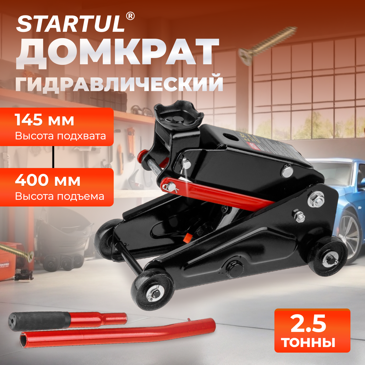 Домкрат подкатной 2,5т h400 STARTUL AUTO (ST8014-07) (h min 145мм, h max 400мм) 6 130 ₽