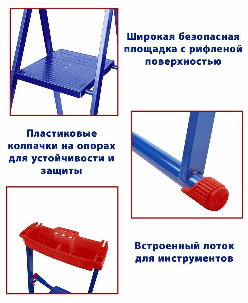 Стремянка металлическая для дома и дачи 3 ступени Синяя информация: