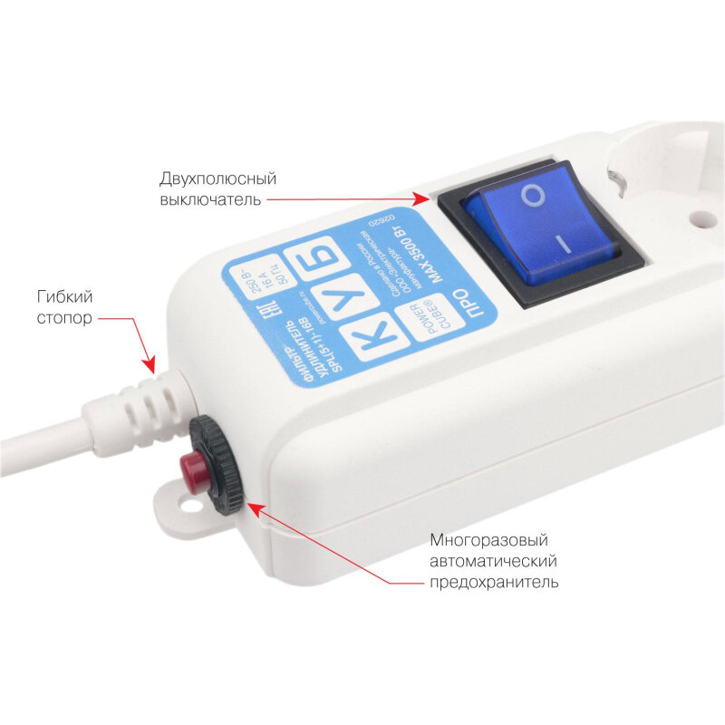 Сетевой фильтр Power Cube PRO, 5.0 м белый 16А/3,5кВт(SPL(5+1)-16B-P-5М) 1575992 информация: