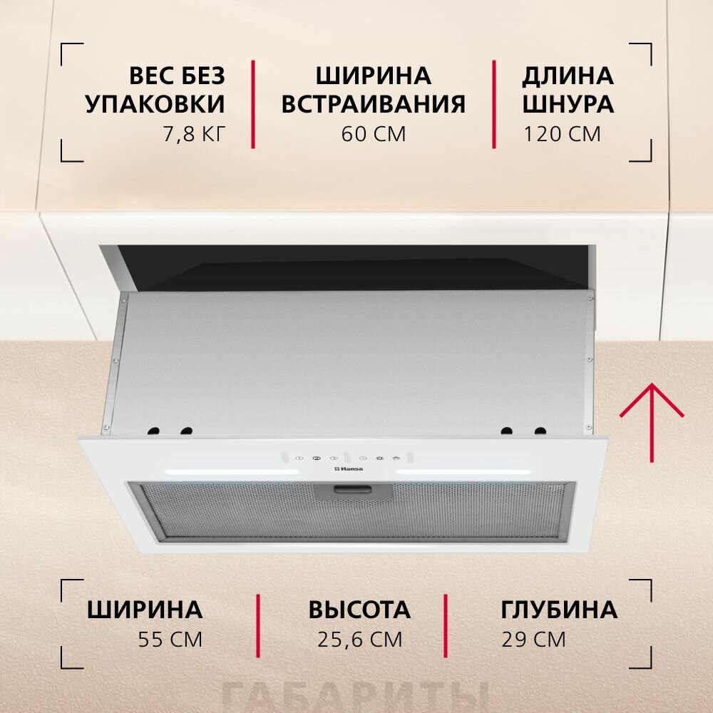 10 цен на Встраиваемая вытяжка Hansa OMP6553WGH, мощность турбины 790 куб.м/ч, жестовое/сенсорное управление, 3 скорости вентилятора, цвет белый