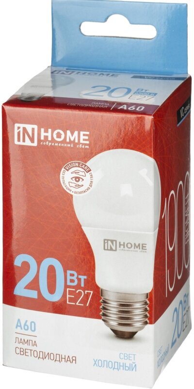 Отзывы на Лампа светодиодная IN HOME LED-A60-VC, Е27, 20 Вт, 230 В, 6500 К, 1900 Лм