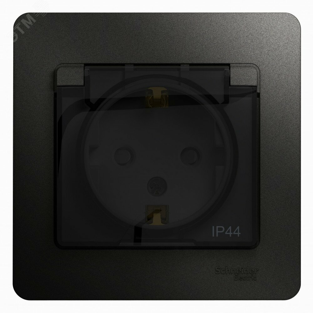 Розетка SYSTEME ELECTRIC (SCHNEIDER ELECTRIC) SCHNEIDER ELECTRIC с/з со шторками с крышкой, 16А, IP44 (в сборе) Glossa, Антрацит, GSL000748