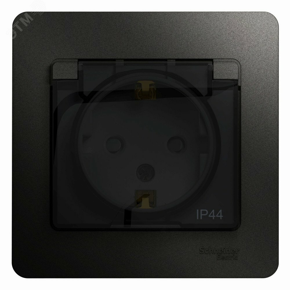GLOSSA Розетка с заземлением со шторками с крышкой IP44 антрацит в сборе | код GSL000748 | Schneider Electric (1 шт.)