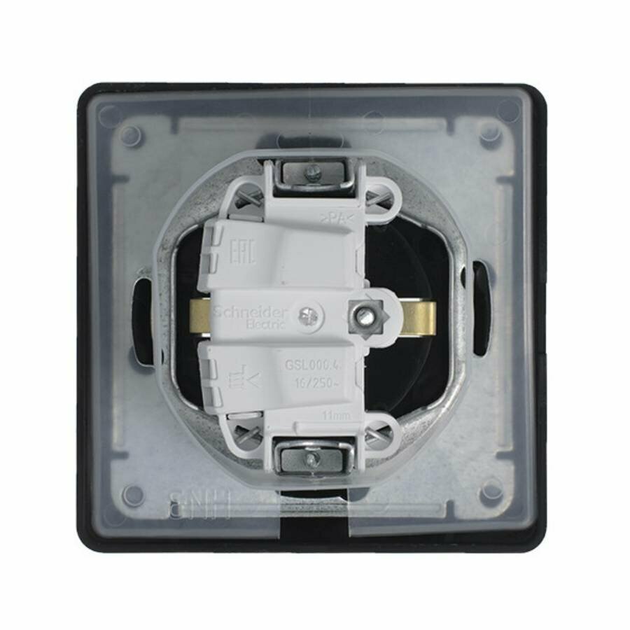 Розетка SYSTEME ELECTRIC (SCHNEIDER ELECTRIC) SCHNEIDER ELECTRIC с/з со шторками с крышкой, 16А, IP44 (в сборе) Glossa, Антрацит, GSL000748