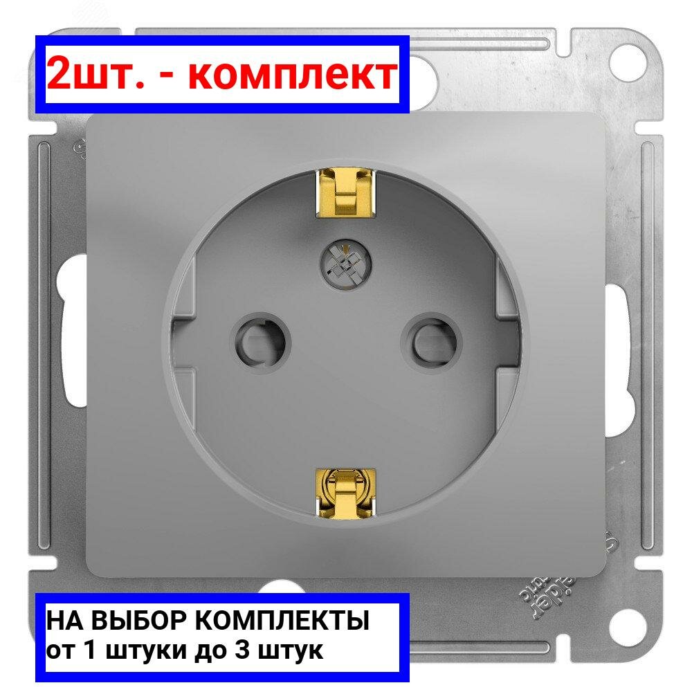 2шт. - GLOSSA Розетка с заземлением со шторками в рамку алюминий / Systeme Electric; арт. GSL000345; оригинал / - комплект 2шт информация: