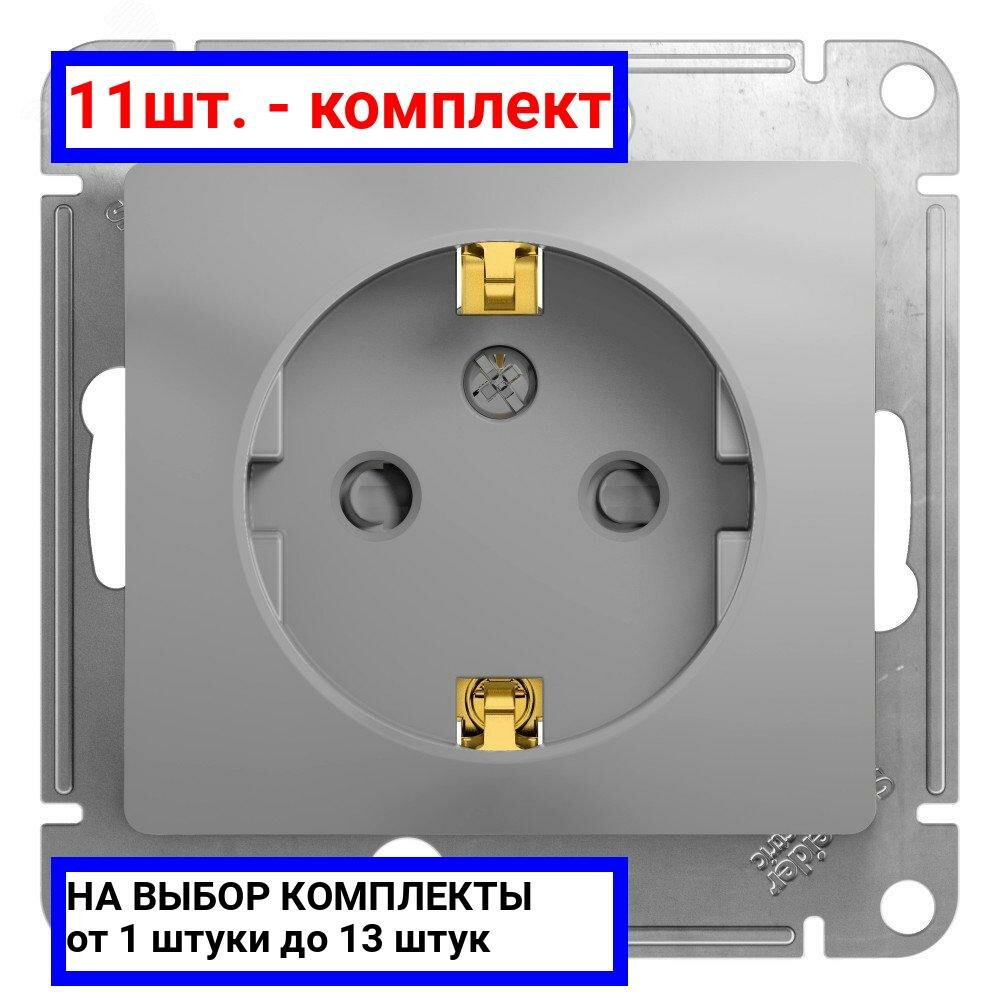 11шт. - GLOSSA Розетка с заземлением со шторками в рамку алюминий / Systeme Electric; арт. GSL000345; оригинал / - комплект 11шт информация: