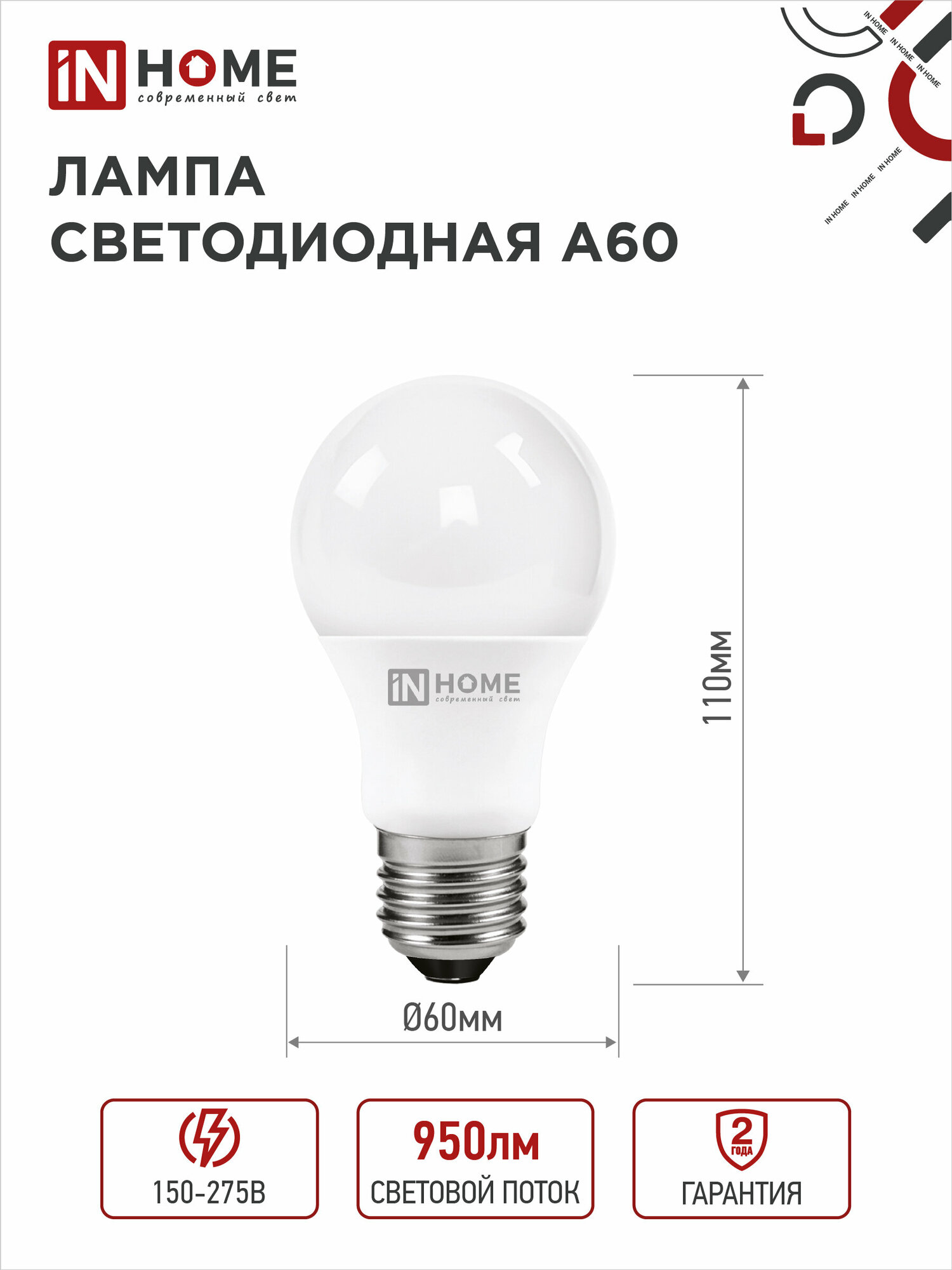 (14 шт.) Светодиодная лампочка IN HOME A60 12Вт 230В 3000К Е27 1080Лм 1 238 ₽