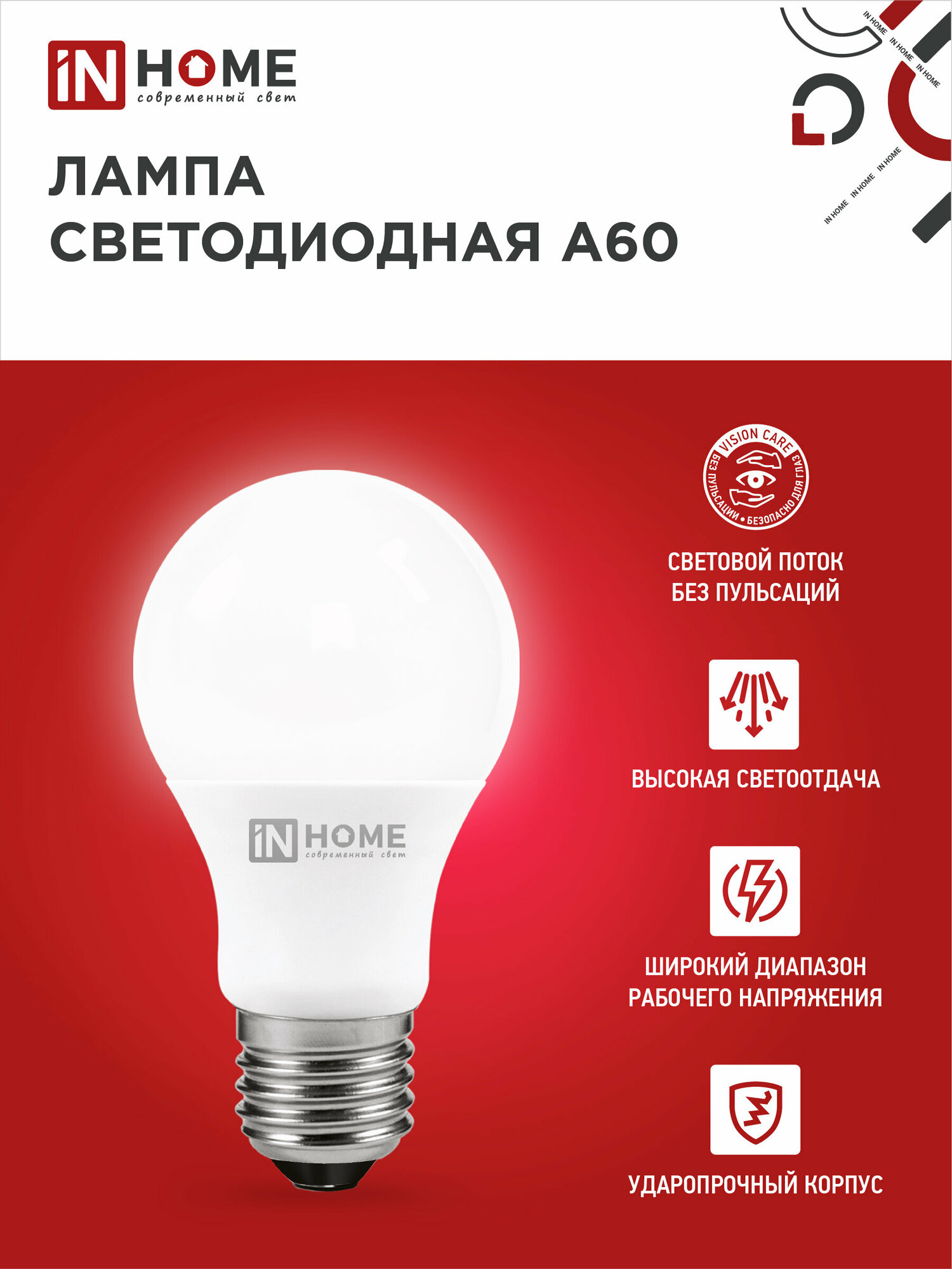 (10 шт.) Светодиодная лампочка IN HOME A60 12Вт 230В 3000К Е27 1080Лм 952 ₽