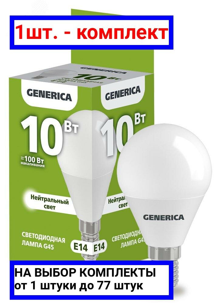 10 цен на IEK GENERICA шар G45 E14 10W(1000lm) 4000K 4K 45x81 матов. LL-G45-10-230-40-E14-G