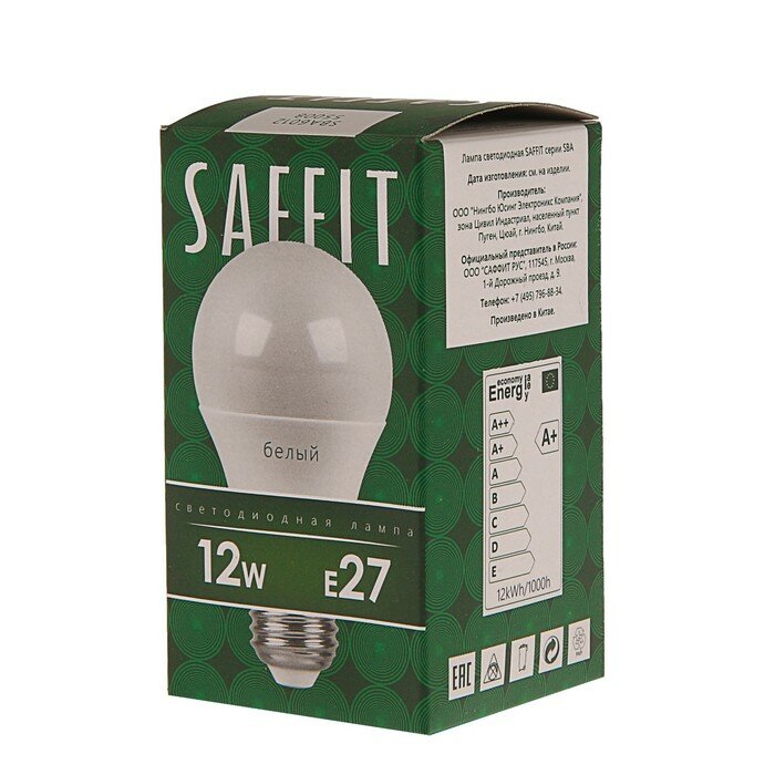 Отзывы на Лампа светодиодная E27, 12 Вт, 120 Вт, 230 В, груша, 4000 К, свет белый, Saffit, CBA6012, A60, 55008