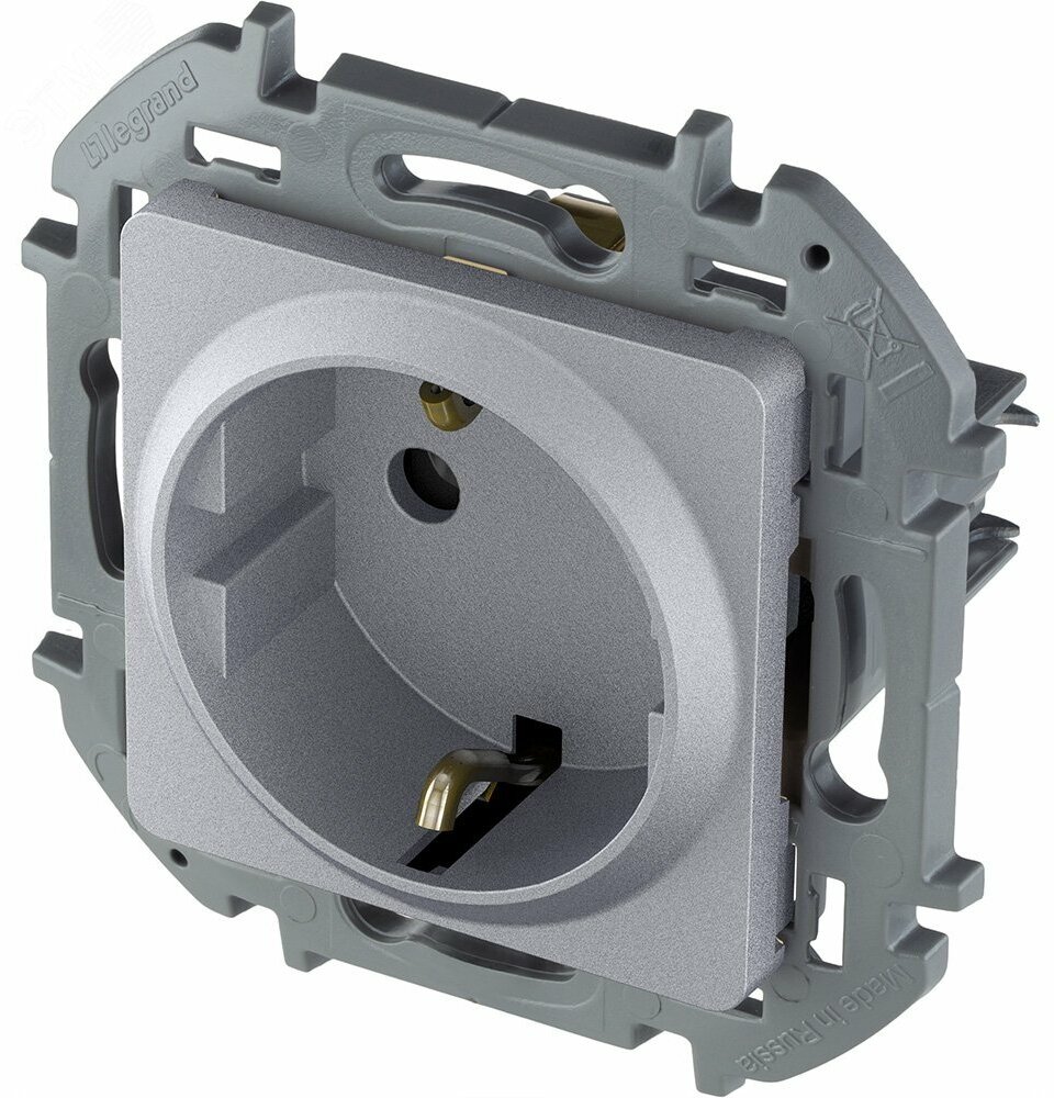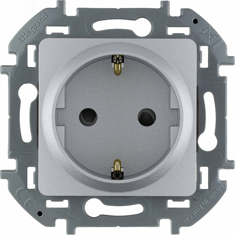 Розетка 220В с заземлением, с защитными шторками Legrand Inspiria для скрытого монтажа, цвет - алюминий